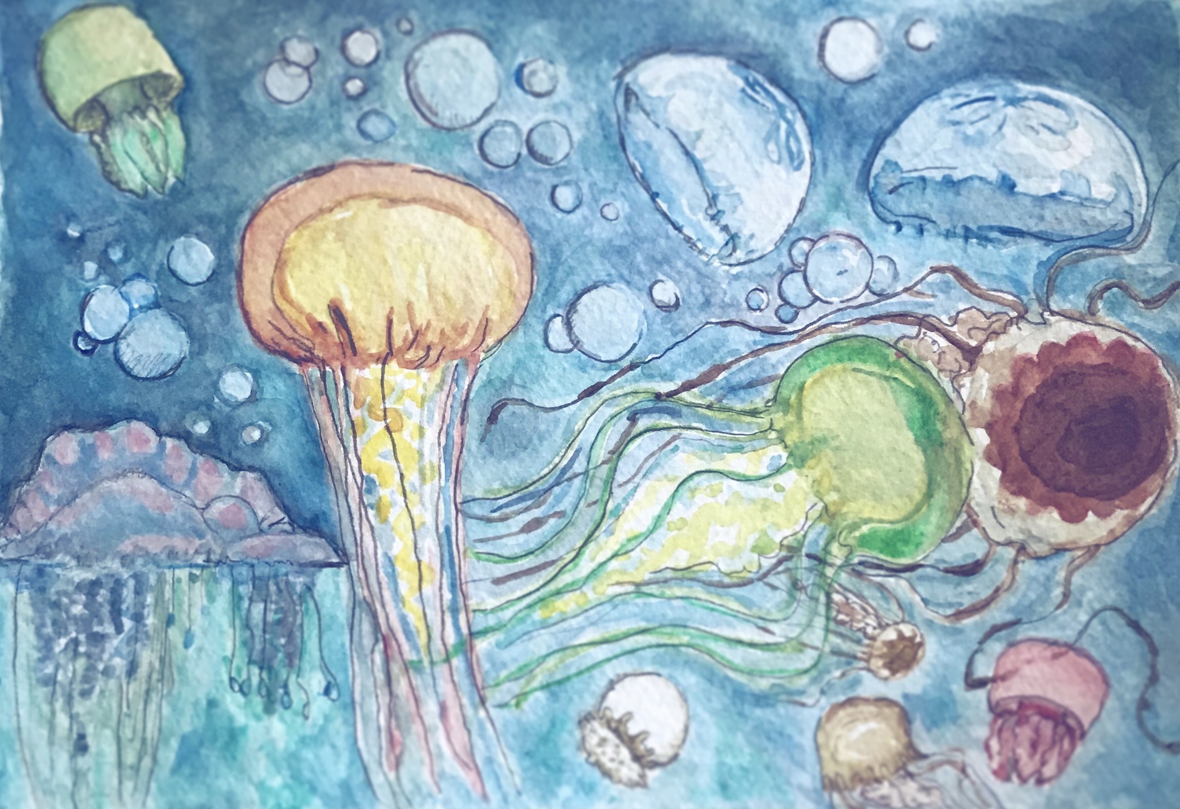 This piece includes seven species of jellyfish, including the deadliest jellyfish, the Man of War.