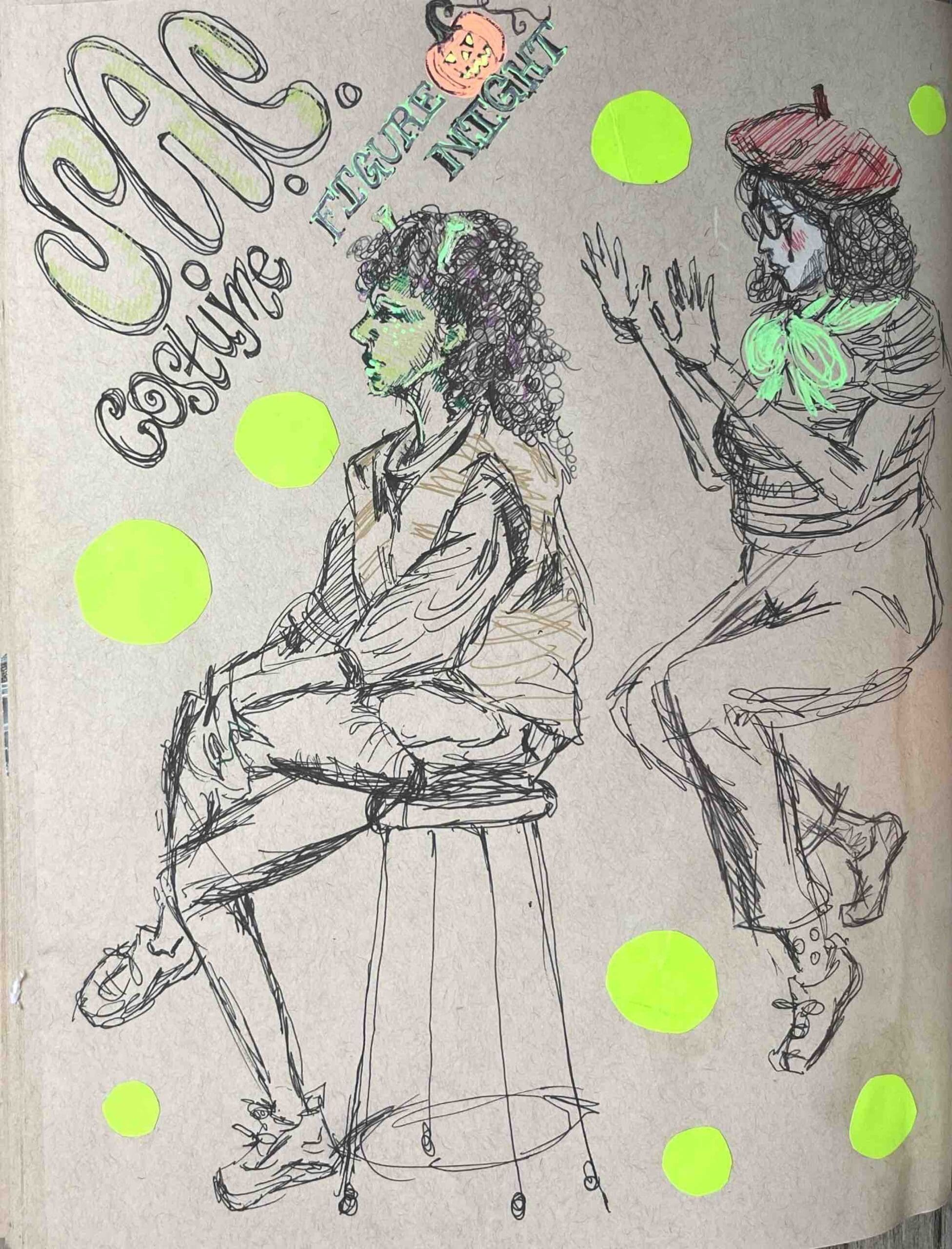 This sketch includes models drawn from observation at a costume figure drawing meeting of art club.