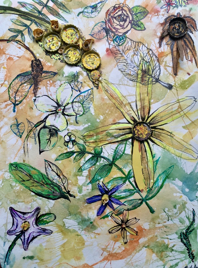 This piece is meant to represent the nostalgia of pressing wildflowers.
